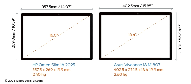 HDMIBoth Omen Slim 16 2025 and Vivobook 18 M1807 feature an HDMI port (1x HDMI 2.1) for connecting to external monitors.
