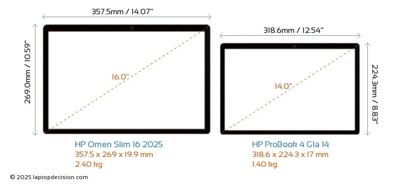 HDMIBoth Omen Slim 16 2025 and ProBook 4 G1a 14 feature an HDMI port (1x HDMI 2.1) for connecting to external monitors.