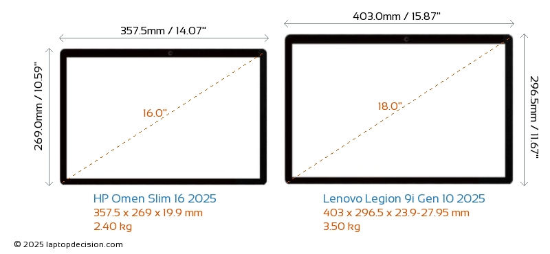 HDMIBoth Omen Slim 16 2025 and Legion 9i Gen 10 2025 feature an HDMI port (1x HDMI 2.1) for connecting to external monitors.