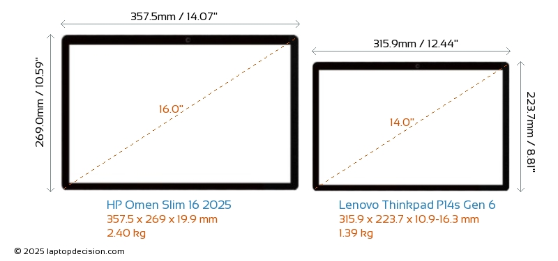 HDMIBoth Omen Slim 16 2025 and Thinkpad P14s Gen 6 feature an HDMI port (1x HDMI 2.1) for connecting to external monitors.
