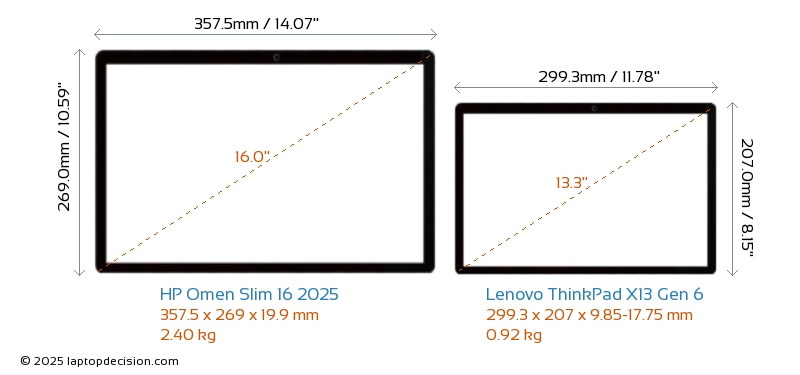 HDMIBoth Omen Slim 16 2025 and ThinkPad X13 Gen 6 feature an HDMI port (1x HDMI 2.1) for connecting to external monitors.