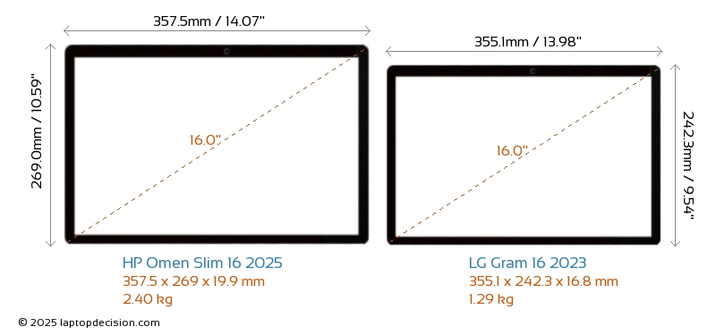 Audio JackBoth Omen Slim 16 2025 and Gram 16 2023 are equipped with a 3.5mm Audio Jack, providing seamless connection to headphones and speakers.