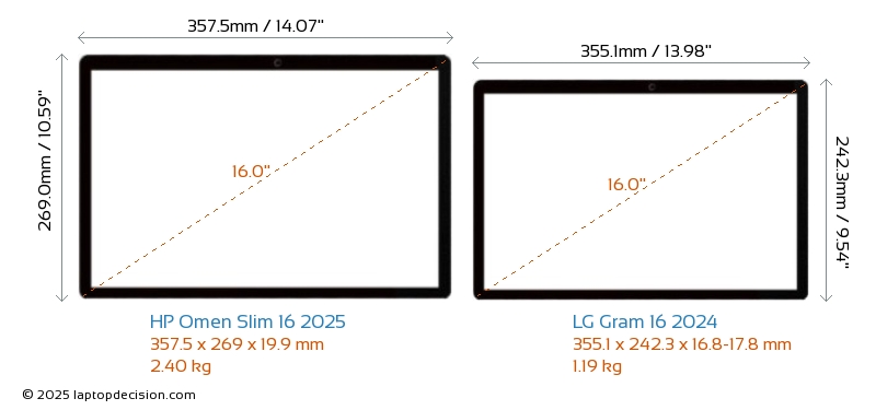 HDMIBoth Omen Slim 16 2025 and Gram 16 2024 feature an HDMI port (1x HDMI 2.1) for connecting to external monitors.