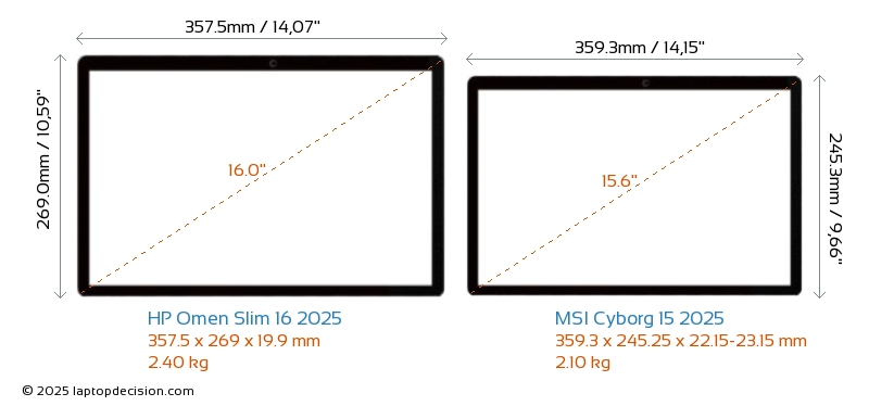 HDMIBoth Omen Slim 16 2025 and Cyborg 15 2025 feature an HDMI port (1x HDMI 2.1) for connecting to external monitors.