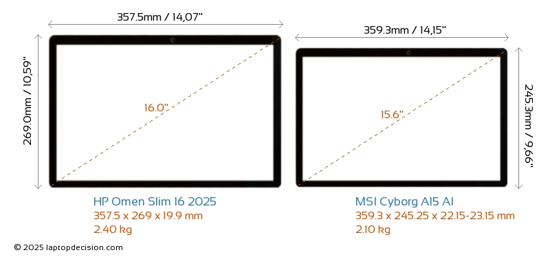 HDMIBoth Omen Slim 16 2025 and Cyborg A15 AI feature an HDMI port (1x HDMI 2.1) for connecting to external monitors.