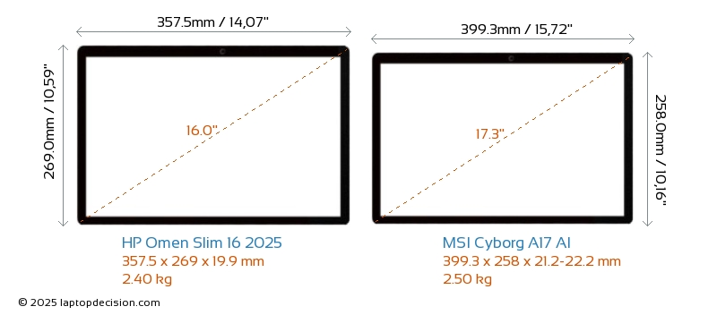 HDMIBoth Omen Slim 16 2025 and Cyborg A17 AI feature an HDMI port (1x HDMI 2.1) for connecting to external monitors.