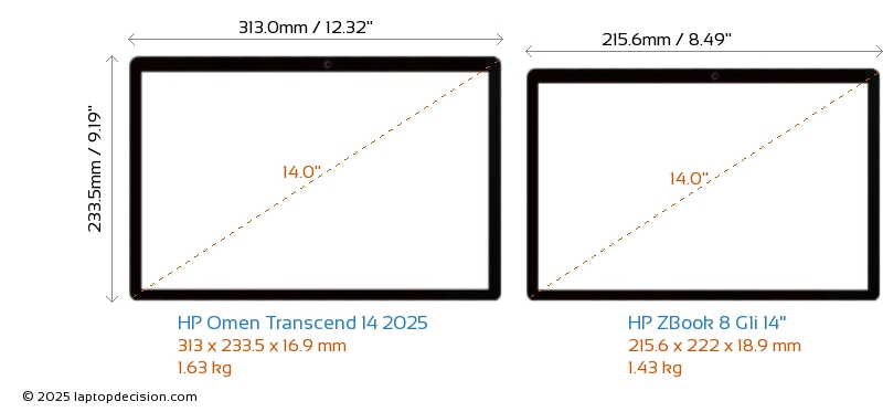 ThunderboltBoth Omen Transcend 14 2025 and ZBook 8 G1i 14" are equipped with Thunderbolt 4 ports.