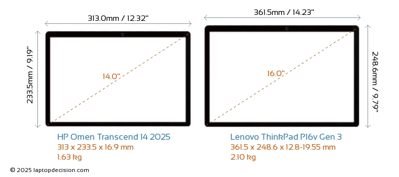 HDMIBoth Omen Transcend 14 2025 and ThinkPad P16v Gen 3 feature an HDMI port (1x HDMI 2.1) for connecting to external monitors.