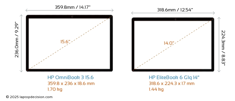 HDMIBoth OmniBook 3 15.6 and EliteBook 6 G1q 14" feature an HDMI port. OmniBook 3 15.6 offers 1x HDMI 1.4, while EliteBook 6 G1q 14" offers 1x HDMI 2.1.