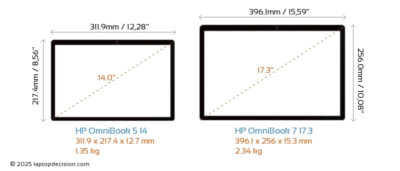 HDMI OmniBook 7 17.3 features an HDMI port (1x HDMI 2.1) for connecting to external monitors. OmniBook 5 14 does not have an HDMI port.