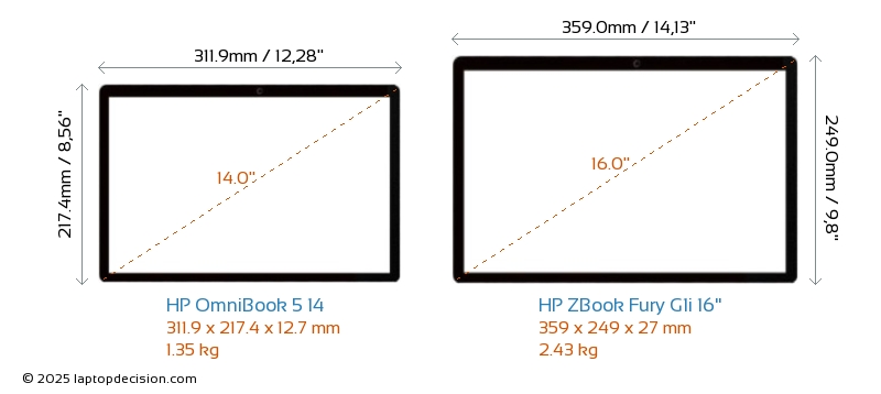 HDMI ZBook Fury G1i 16" features an HDMI port (1x HDMI 2.1) for connecting to external monitors. OmniBook 5 14 does not have an HDMI port.