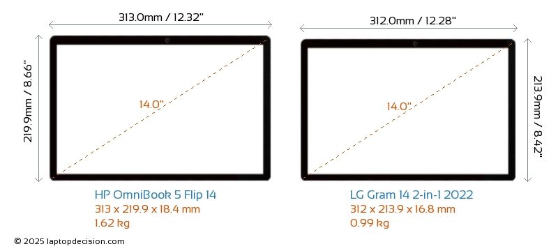 USBBoth OmniBook 5 Flip 14 and Gram 14 2-in-1 2022 feature 2x USB 3.2 USB-A ports.Both OmniBook 5 Flip 14 and Gram 14 2-in-1 2022 have USB Type-C ports. OmniBook 5 Flip 14 has 2x USB 3.2 USB Type-C ports, while Gram 14 2-in-1 2022 has 2x USB 4.0 USB Type-C ports.