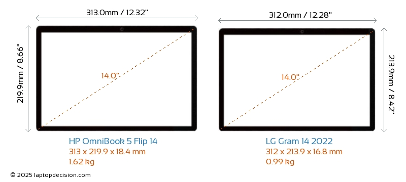 USBBoth OmniBook 5 Flip 14 and Gram 14 2022 feature 2x USB 3.2 USB-A ports.Both OmniBook 5 Flip 14 and Gram 14 2022 have USB Type-C ports. OmniBook 5 Flip 14 has 2x USB 3.2 USB Type-C ports, while Gram 14 2022 has 2x USB 4.0 USB Type-C ports.