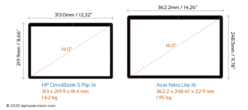 HDMIBoth OmniBook 5 Flip 14 and Nitro Lite 16 feature an HDMI port (1x HDMI 2.1) for connecting to external monitors.