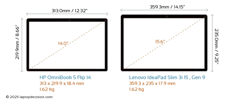 USBBoth OmniBook 5 Flip 14 and IdeaPad Slim 3i 15 , Gen 9 feature 2x USB 3.2 USB-A ports.Both OmniBook 5 Flip 14 and IdeaPad Slim 3i 15 , Gen 9 have USB Type-C ports. OmniBook 5 Flip 14 has 2x USB 3.2 USB Type-C ports, while IdeaPad Slim 3i 15 , Gen 9 has 1x USB 3.2 USB Type-C ports.