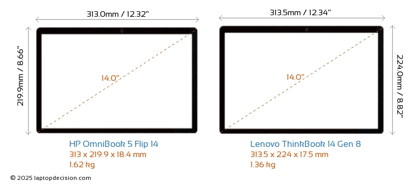 Audio JackBoth OmniBook 5 Flip 14 and ThinkBook 14 Gen 8 are equipped with a 3.5mm Audio Jack, providing seamless connection to headphones and speakers.