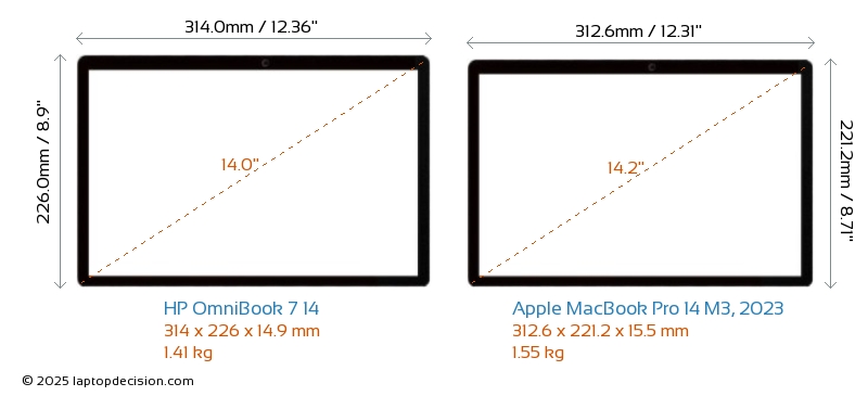 ThunderboltBoth OmniBook 7 14 and MacBook Pro 14 M3, 2023 are equipped with Thunderbolt 4 ports.