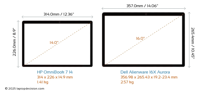 HDMIBoth OmniBook 7 14 and Alienware 16X Aurora feature an HDMI port (1x HDMI 2.1) for connecting to external monitors.