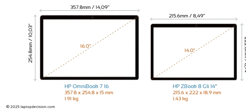 HDMIBoth OmniBook 7 16 and ZBook 8 G1i 14" feature an HDMI port (1x HDMI 2.1) for connecting to external monitors.