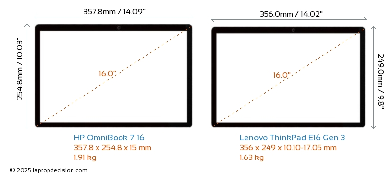 HDMIBoth OmniBook 7 16 and ThinkPad E16 Gen 3 feature an HDMI port (1x HDMI 2.1) for connecting to external monitors.