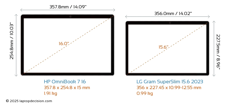 HDMI OmniBook 7 16 features an HDMI port (1x HDMI 2.1) for connecting to external monitors. Gram SuperSlim 15.6 2023 does not have an HDMI port.