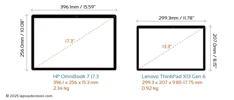 ThunderboltBoth OmniBook 7 17.3 and ThinkPad X13 Gen 6 are equipped with Thunderbolt 4 ports.
