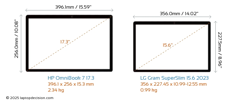 HDMI OmniBook 7 17.3 features an HDMI port (1x HDMI 2.1) for connecting to external monitors. Gram SuperSlim 15.6 2023 does not have an HDMI port.