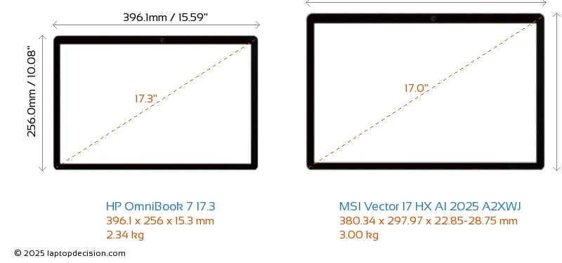 Audio JackBoth OmniBook 7 17.3 and Vector 17 HX AI 2025 A2XWJ are equipped with a 3.5mm Audio Jack, providing seamless connection to headphones and speakers.
