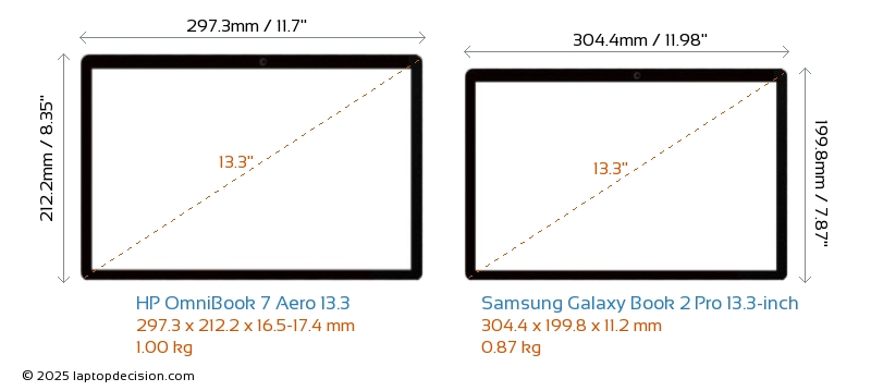 Audio JackBoth OmniBook 7 Aero 13.3 and Galaxy Book 2 Pro 13.3-inch are equipped with a 3.5mm Audio Jack, providing seamless connection to headphones and speakers.
