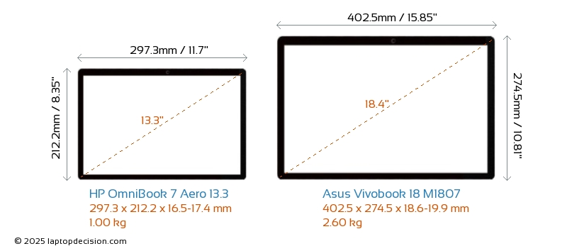 USBBoth OmniBook 7 Aero 13.3 and Vivobook 18 M1807 feature 2x USB 3.2 USB-A ports.Both OmniBook 7 Aero 13.3 and Vivobook 18 M1807 feature 2x USB 4.0 USB Type-C ports.