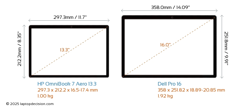 Wifi Pro 16 features a more advanced Wi-Fi standard v7, providing faster and more reliable wireless connections compared to OmniBook 7 Aero 13.3 (v6E).