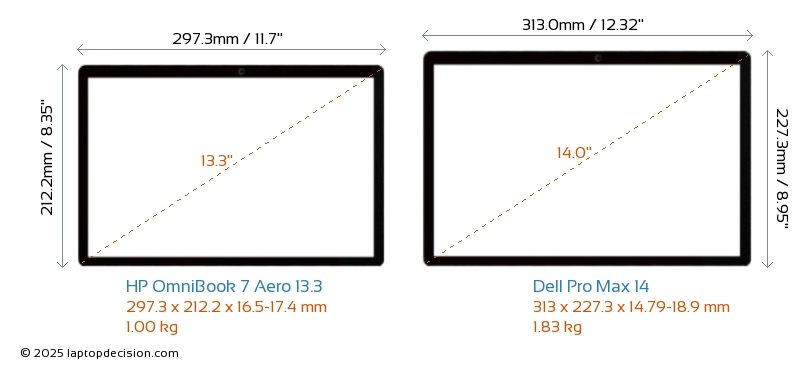 Wifi Pro Max 14 features a more advanced Wi-Fi standard v7, providing faster and more reliable wireless connections compared to OmniBook 7 Aero 13.3 (v6E).