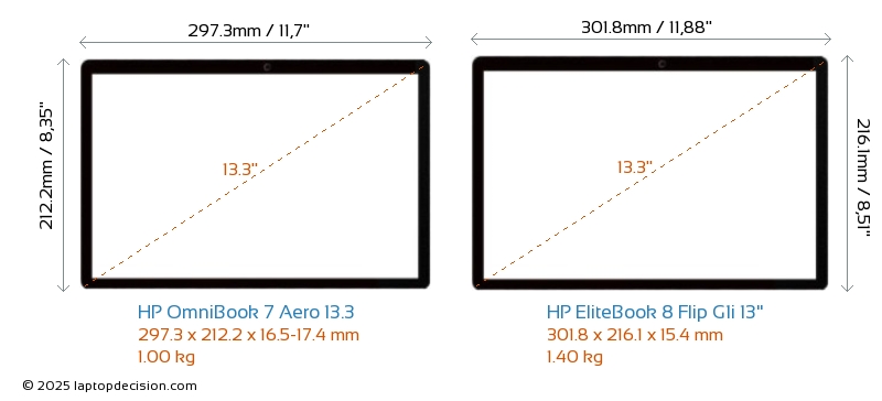 Audio JackBoth OmniBook 7 Aero 13.3 and EliteBook 8 Flip G1i 13" are equipped with a 3.5mm Audio Jack, providing seamless connection to headphones and speakers.
