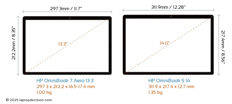 HDMI OmniBook 7 Aero 13.3 features an HDMI port (1x HDMI 2.1) for connecting to external monitors. OmniBook 5 14 does not have an HDMI port.