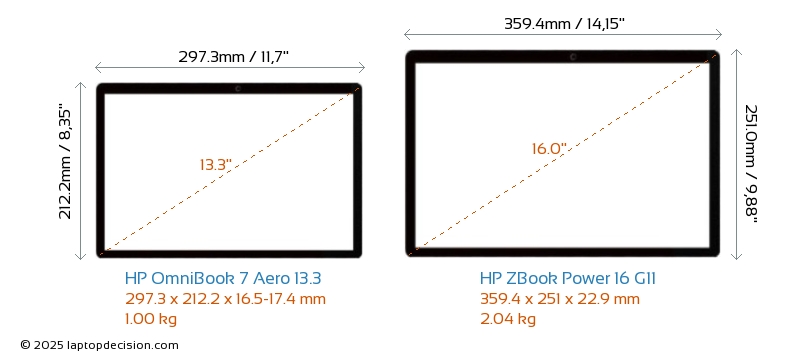 HDMI OmniBook 7 Aero 13.3 features an HDMI port (1x HDMI 2.1) for connecting to external monitors. ZBook Power 16 G11 does not have an HDMI port.