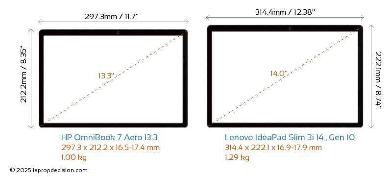 Audio JackBoth OmniBook 7 Aero 13.3 and IdeaPad Slim 3i 14 , Gen 10 are equipped with a 3.5mm Audio Jack, providing seamless connection to headphones and speakers.