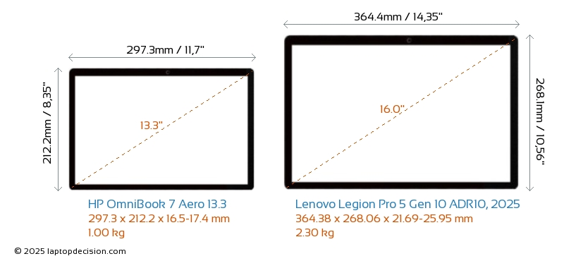 Wifi Legion Pro 5 Gen 10 ADR10, 2025 features a more advanced Wi-Fi standard v7, providing faster and more reliable wireless connections compared to OmniBook 7 Aero 13.3 (v6E).