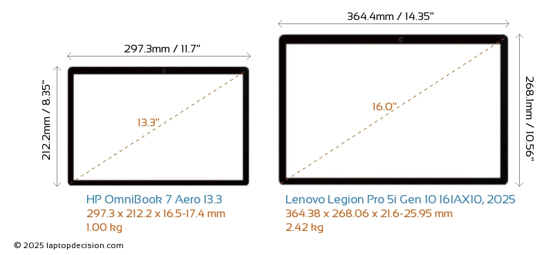 Wifi Legion Pro 5i Gen 10 16IAX10, 2025 features a more advanced Wi-Fi standard v7, providing faster and more reliable wireless connections compared to OmniBook 7 Aero 13.3 (v6E).