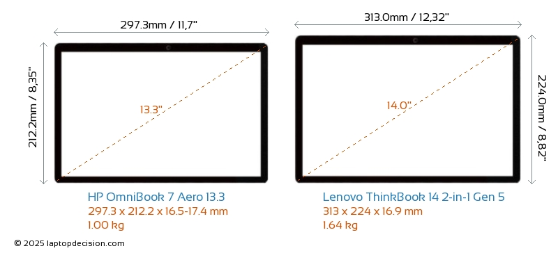 Audio JackBoth OmniBook 7 Aero 13.3 and ThinkBook 14 2-in-1 Gen 5 are equipped with a 3.5mm Audio Jack, providing seamless connection to headphones and speakers.