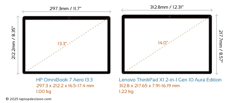 HDMIBoth OmniBook 7 Aero 13.3 and ThinkPad X1 2-in-1 Gen 10 Aura Edition feature an HDMI port (1x HDMI 2.1) for connecting to external monitors.