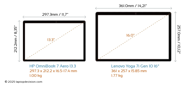 Audio JackBoth OmniBook 7 Aero 13.3 and Yoga 7i Gen 10 16" are equipped with a 3.5mm Audio Jack, providing seamless connection to headphones and speakers.