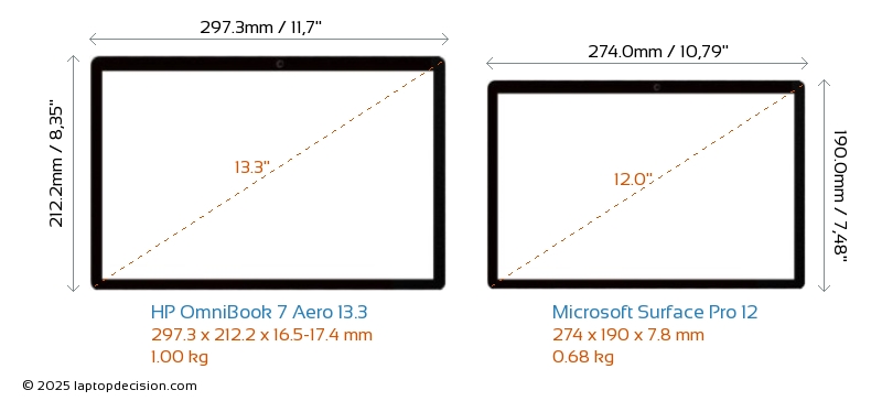 Audio Jack OmniBook 7 Aero 13.3 is equipped with a 3.5mm Audio Jack, allowing seamless connection to headphones and speakers. Surface Pro 12 does not have a 3.5mm Audio Jack.