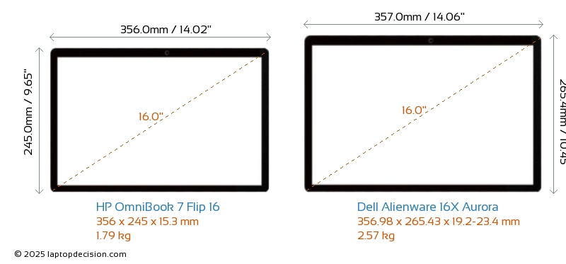 HDMIBoth OmniBook 7 Flip 16 and Alienware 16X Aurora feature an HDMI port (1x HDMI 2.1) for connecting to external monitors.