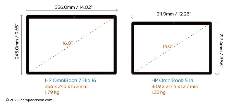 HDMI OmniBook 7 Flip 16 features an HDMI port (1x HDMI 2.1) for connecting to external monitors. OmniBook 5 14 does not have an HDMI port.