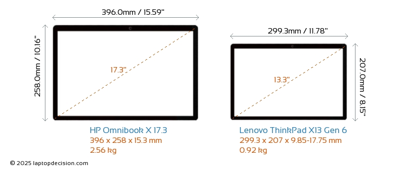 ThunderboltBoth Omnibook X 17.3 and ThinkPad X13 Gen 6 are equipped with Thunderbolt 4 ports.
