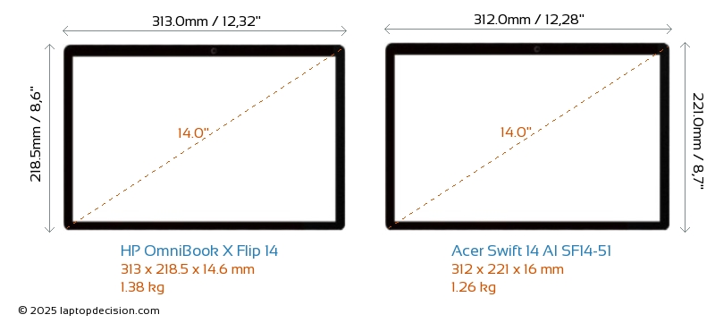 USBBoth OmniBook X Flip 14 and Swift 14 AI SF14-51 feature 2x USB 3.2 USB-A ports.Both OmniBook X Flip 14 and Swift 14 AI SF14-51 feature 2x USB 4.0 USB Type-C ports.