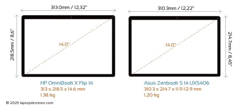 USBBoth OmniBook X Flip 14 and Zenbook S 14 UX5406 feature 2x USB 3.2 USB-A ports.Both OmniBook X Flip 14 and Zenbook S 14 UX5406 feature 2x USB 4.0 USB Type-C ports.