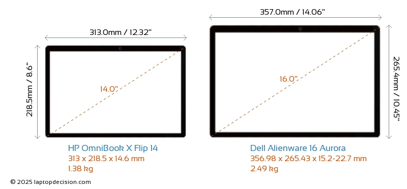 Audio JackBoth OmniBook X Flip 14 and Alienware 16 Aurora are equipped with a 3.5mm Audio Jack, providing seamless connection to headphones and speakers.