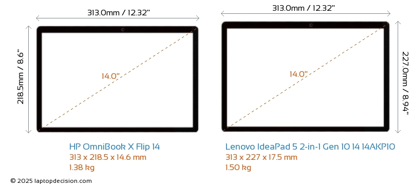 USBBoth OmniBook X Flip 14 and IdeaPad 5 2-in-1 Gen 10 14 14AKP10 feature 2x USB 3.2 USB-A ports.Both OmniBook X Flip 14 and IdeaPad 5 2-in-1 Gen 10 14 14AKP10 feature 2x USB 4.0 USB Type-C ports.