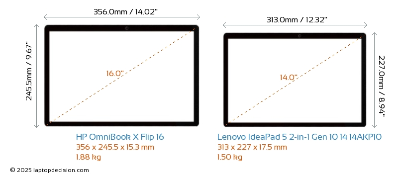 USBBoth OmniBook X Flip 16 and IdeaPad 5 2-in-1 Gen 10 14 14AKP10 feature 2x USB 3.2 USB-A ports.Both OmniBook X Flip 16 and IdeaPad 5 2-in-1 Gen 10 14 14AKP10 feature 2x USB 4.0 USB Type-C ports.